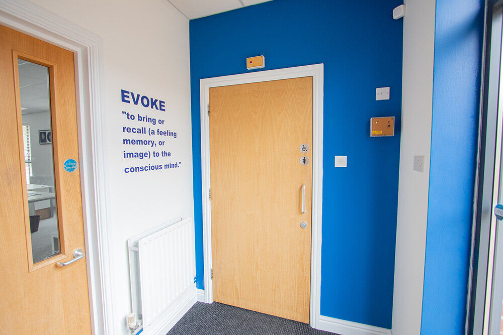The entrance is located close to the allocated parking spaces and has two toilets as you come in. The entrance hall and office space are separated by a door to minimise disturbance when clients or visitors arrive.